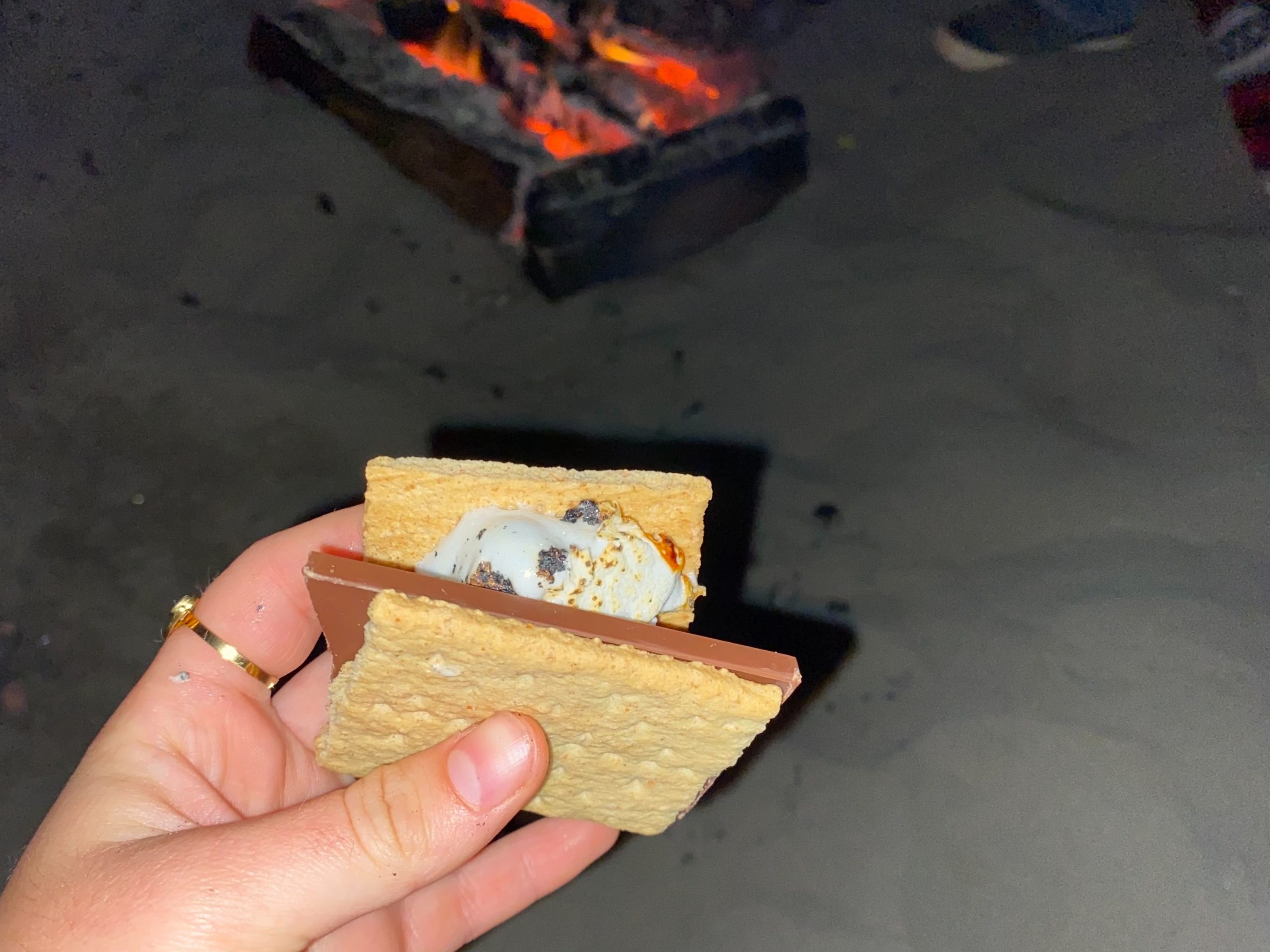 Nous avons fait une soirée sur la plage et j’ai mangé mes premiers S’mores (crakers + barre de chocolats + chamallow) et c’est très bon ! J’ai aussi vu le plus beau couché de soleil de ma vie.
