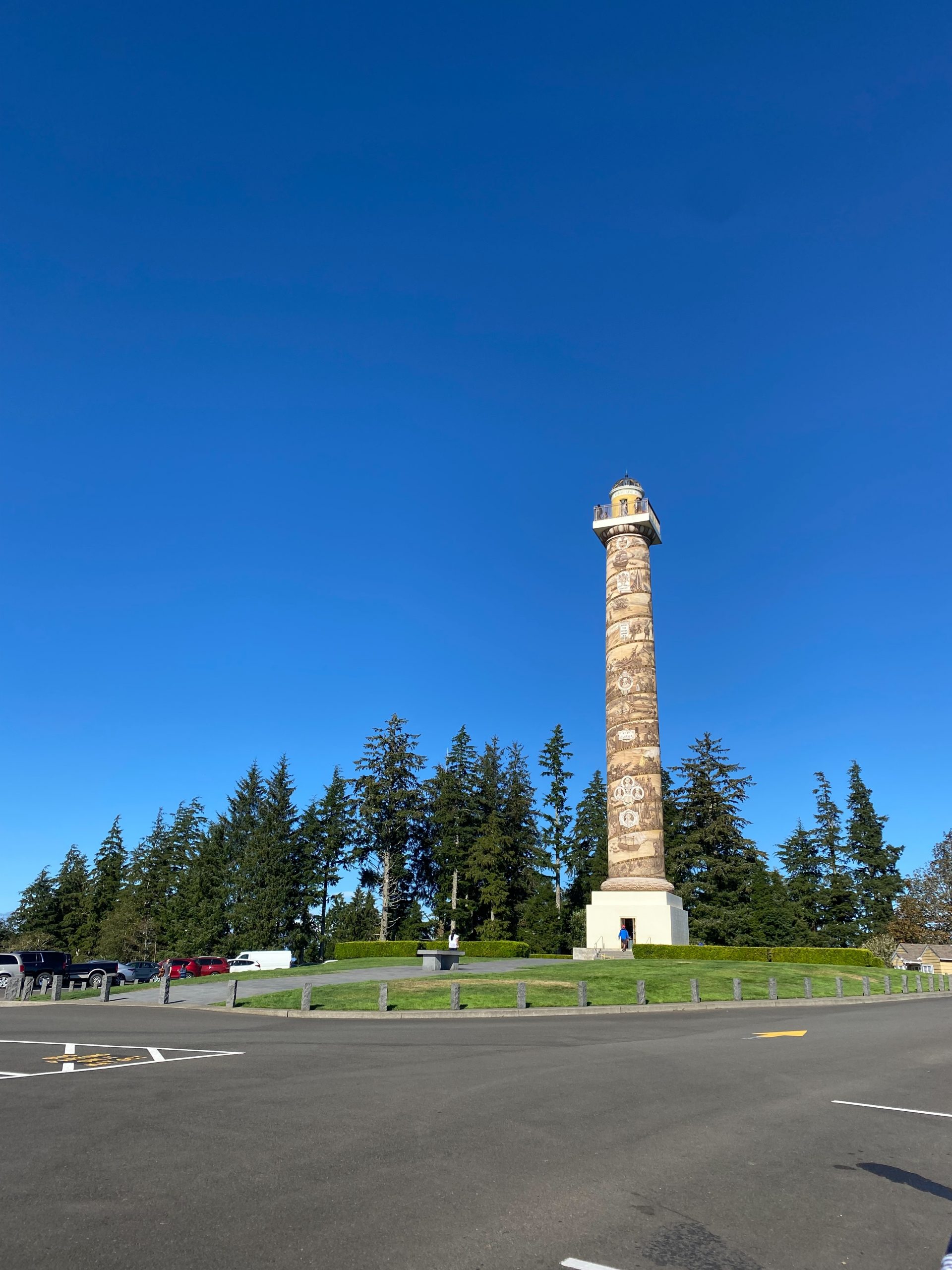 Nous avons visité Astoria (une ville à 30min de route), nous avons mangé dans un restaurant avec une vue sur l’Etat de Washington. Puis nous sommes allée à « the Astoria column » c’est une tour de 38m de haut (125pieds) construite en 1926.