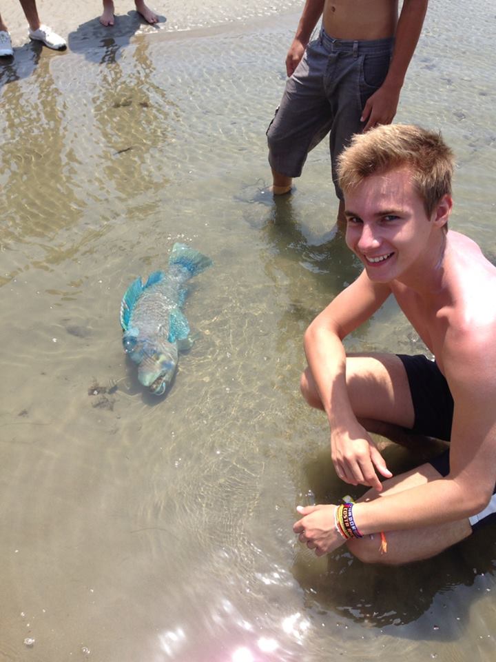Nous avons pécher un poisson énorme, (à voir sur la photo) sur une plage plus éloignée de la ville, loin des bateaux et donc là ou vivent les poissons selon ma famille d’accueil.